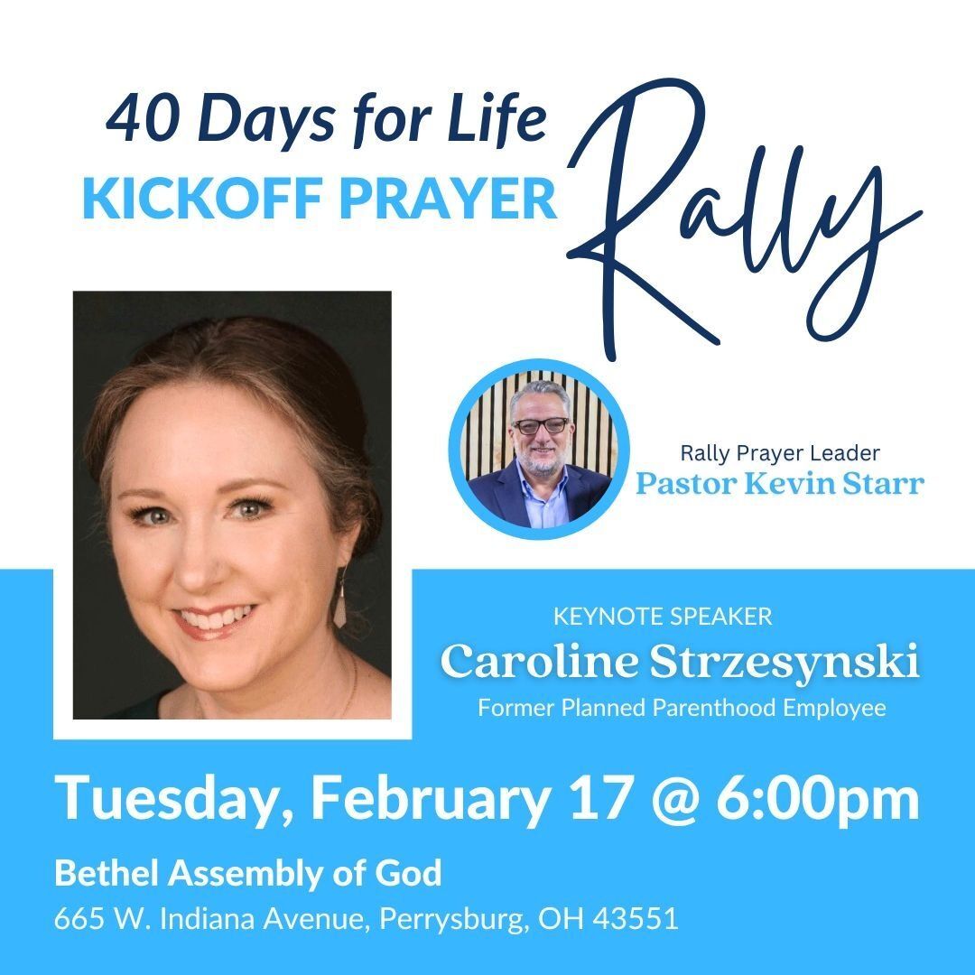 Join Catholic Charities for the Kick-Off to the 40 Days for Life Spring Campaign at Bethel Assembly of God in Perrysburg, OH! We will begin with praise and worship at 6 pm, led by Pastor Kevin Starr and the Bethel worship team, followed by a powerful witness given by Caroline Strzesynski. Hear her story about how working at Planned Parenthood triggered a drastic conversion to Christ and the Pro-life movement. We hope to see you there!